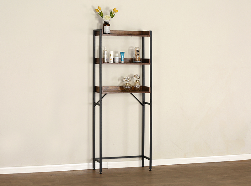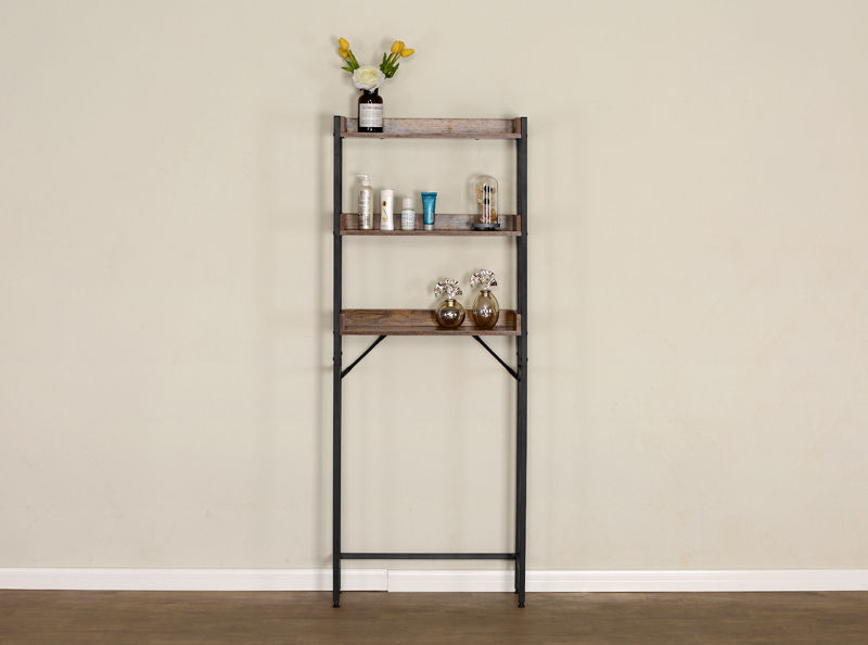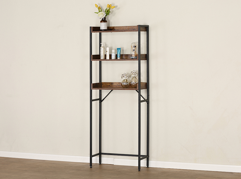 The over the toilet storage shelf has board and black metal frame, which shows the elegant and noble taste and provide unique scenery in your bathroom.