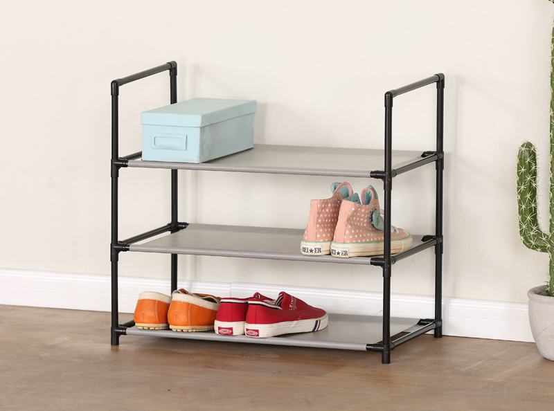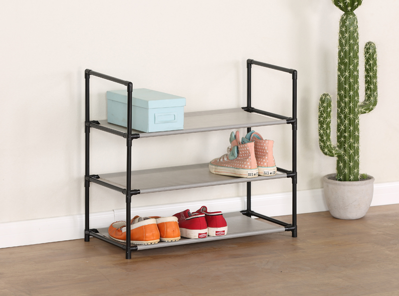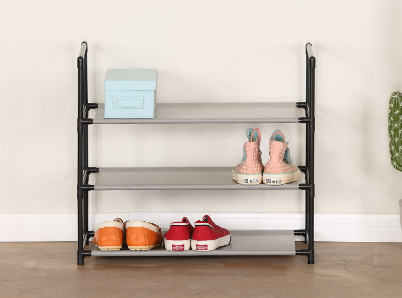 Name:SHOE RACK-XJ630KTurnover time:2022/10/29 17:32:36 Product Name ◎Shoe Rack ◎3-Tier Organizer for Closet, Bathroom, Entryway ◎Shoe Shelf Holds 9 Pair Sneakers, Heels, Boots Product Parameters Model:XJ630K Product Size:58*29*56cm Material:(1)Steel tube with electric coating in black(2)Plastic connector in black Shape:Rectangular |