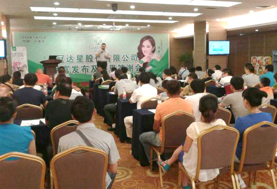 2014年7月15日九州官方备用线路“财富发布及感恩答谢会”在河北石家庄举行,本站是冠达星财富发布及感恩答谢会第9站,图为活动现场九州官方备用线路董…